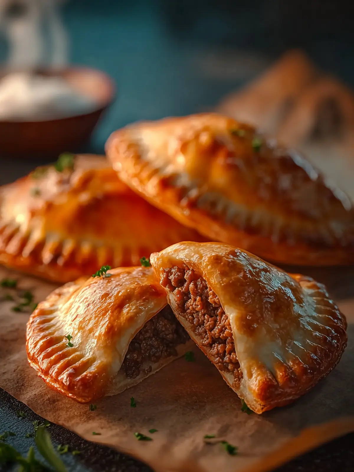 Deliciously baked meat pies filled with savory beef and vegetables.
